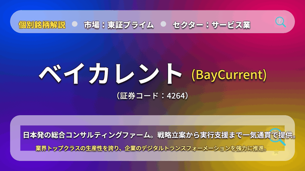 日本発の総合コンサルティング大手、ベイカレント(6532)を分析。独自の「ワンプール制」による高稼働・高収益モデルと、DX需要を追い風にした圧倒的な成長性を解説。 -