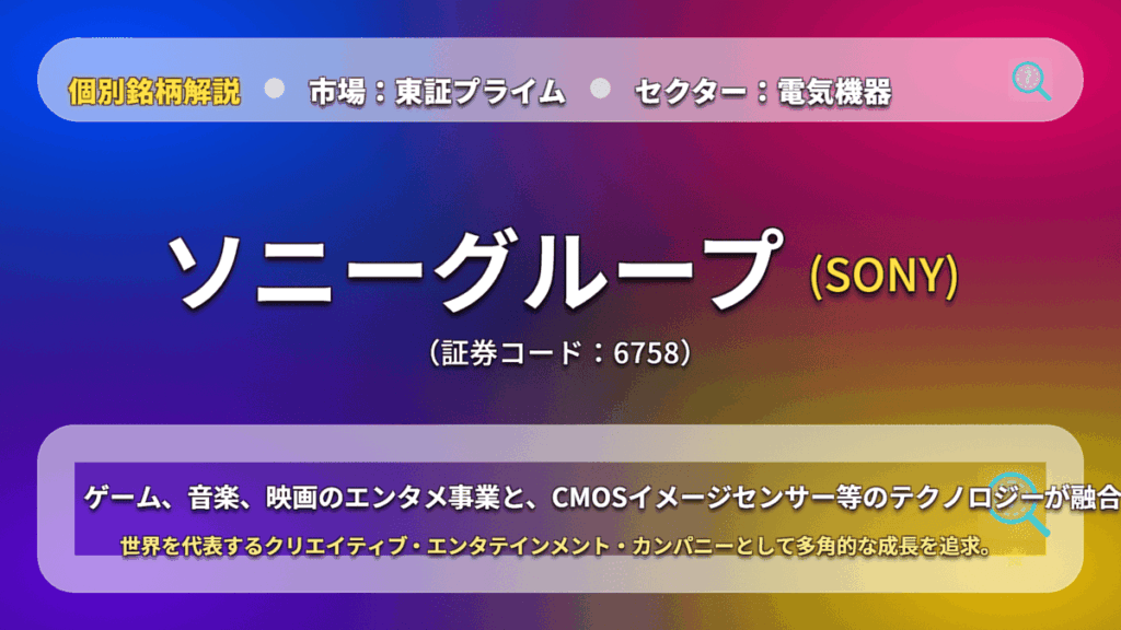 日本を代表するグローバル巨人、ソニーグループ(6758)を徹底分析。世界シェア首位のイメージセンサー、最強のエンタメIP(ゲーム・音楽・映画)戦略、そして金融分離による資本効率向上のシナリオを解説。 -