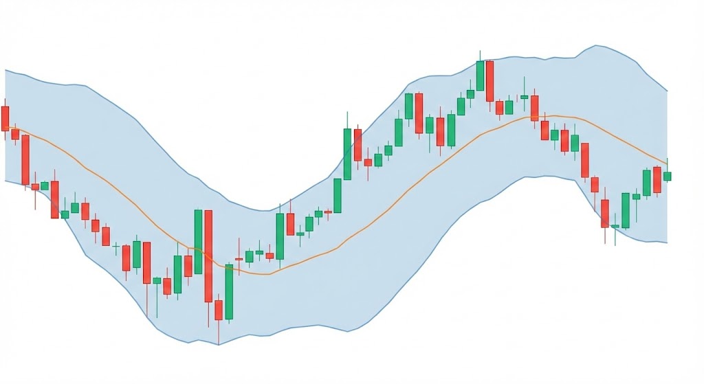 ボリンジャーバンドは、1980年代にジョン・ボリンジャー氏が考案したテクニカル指標です。中心にある「移動平均線(通常は20日線)」と、その上下に描かれる「標準偏差σ(シグマ)」のラインで構成されています。