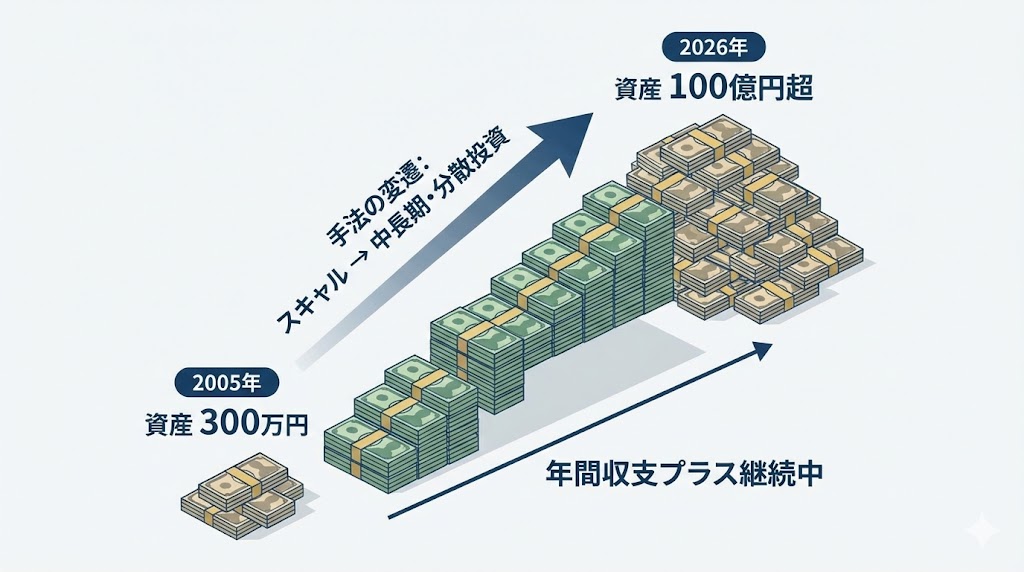 彼は最初からプロだったわけではありません。元フリーターという「完全な素人」から、いかにして頂点へ登り詰めたのか。その軌跡と、20年間揺るがない投資哲学をまとめました。